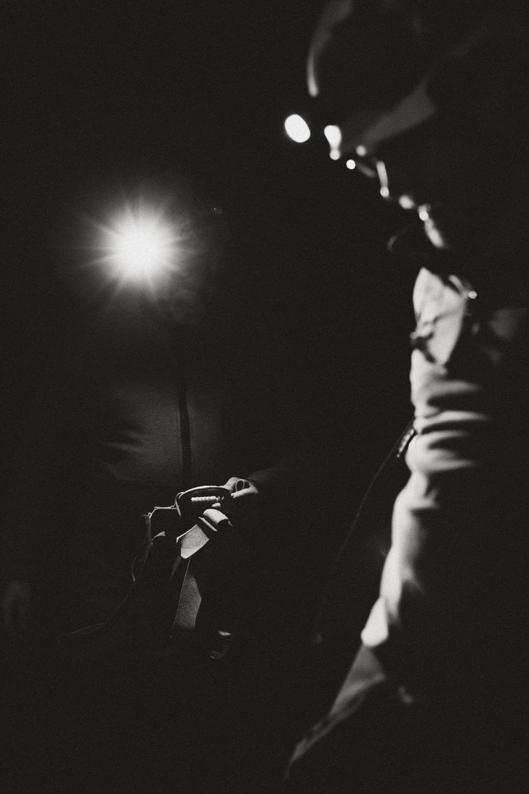 After a few hours of repeatedly shuffling around in the tight rift and launching and kicking rocks back at Jon, I managed to clear enough space above the boulder to squeeze into a narrow perpendicular rift. This made capping a lot more pleasant as I was now able to swing a hammer properly and not have my face right next to the capping bar.